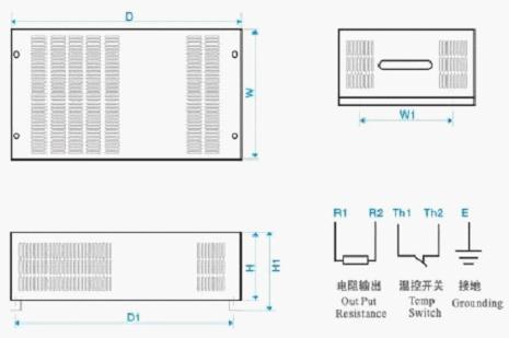 產品特點(Product Features) 1.額定功率范圍:2KW-20KW; 2.額定阻值范圍:1Ω-10KΩ 3.最大工作電壓:2KV; 4.耐壓范圍:AC3KV 50Hz/1min 5.額定溫升:375℃; 6.溫漂范圍:≤400ppm/℃ 7.IP 等級:IP00-IP23; 8.振動:1.5g 9.熱平衡時間常數:1800S 10.載流體材料:0Cr25AL5