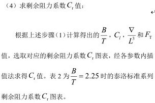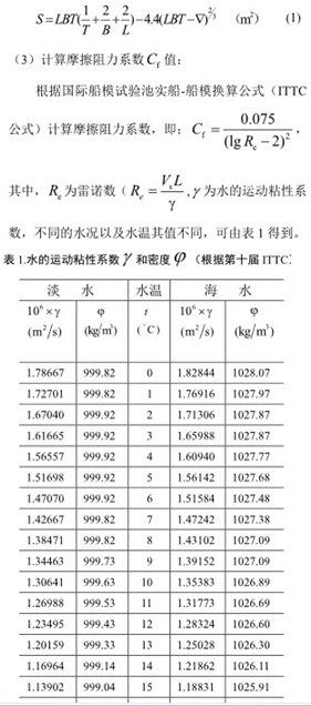 船舶阻力可以分為摩擦阻力和剩余阻力,其中摩擦阻力是其中的主要成分,大約占總阻力的 60% -90%[5]。本文采用泰洛法求取船舶阻力[6]。
