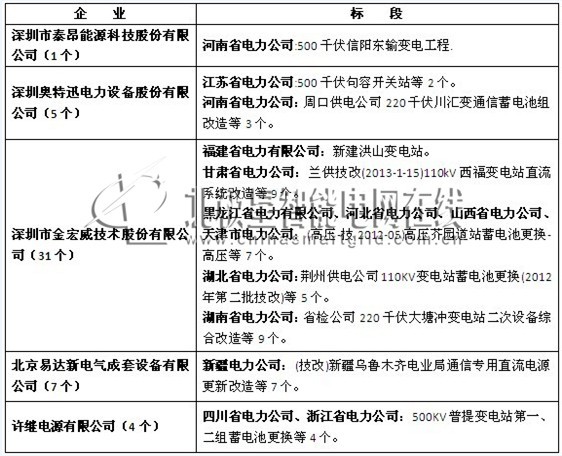 國家電網2013年制動電阻直流電源中標企業公示