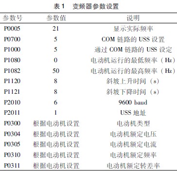 三、配有變頻器的提升機電控系統優點 礦井提升機是煤礦、鐵礦、有色金屬礦、碼頭等生產過程中的重要設備。提升機的安全、可靠運行直接關系到企業的生產狀況和經濟效益。目前,大多數中、小型礦井采用斜井絞車提升及豎井提升機,普遍采用交流繞線式電機串電阻調速系統,電阻的投切用繼電器—交流接觸器控制。這種控制由于接觸器動作頻繁,交流接觸器主觸頭易老化,從而引發設備故障。另外,提升機在減速和爬行段的速度控制性能較差,經常會造成停車位置不準確。提升機頻繁地起動、調速和制動,在轉子外電路所串電阻上產生相當大的功耗。由于是有極調速,起動和調速換檔時電流沖擊大,能耗高、振動大、安全性差,同時給機械部分造成的磨損大,設備維護量也大。隨著技術的進步和成本的降低,采用變頻器系統來實現全頻率(0~50Hz)范圍內的恒轉矩控制已經越來越多地應用到提升絞車上,其顯著的優點如下。 1、安全。專用于起重提升控制的變頻器解決了起動力矩與開閘的順序控制,只要電機起動力矩不足,制動閘瓦就無法打開,這樣就從根本上保證了系統的安全。 2、節能。繞線式電機轉子串電阻調速,制動電阻消耗大量的轉差功率,速度越低消耗的轉差功率越大。變頻調速是一種不耗能的高效的調速方式:提升機大部分時間都處在電動狀態,節能顯著,經測算節能25%以上,運行時間越長節電越多,能有效降低運行成本,提高經濟效益。 3、維護少。變頻器的無極變速使得整個絞車運行平穩,顯著減少機械沖擊與磨損,齒輪、制動盤、閘瓦、鋼絲繩、減速箱、連軸器等使用壽命顯著延長,減少了維護人員的工作量,降低了維護成本,節省了人力物力,提高了運煤能力,間接的經濟效益可觀。 4、易操作。提升機操作人員在開提升機時操作簡便,發生誤動作的概率小。而常規系統的開車過程中,要嚴格配合制動手柄和換檔手柄的操作,提升、下放的操作順序不一樣,容易造成飛車或急起、急停的狀況,跳軌、掉道、彈繩等事件偶有發生,有可能釀成大的事故,給安全生產帶來很大的挑戰。特別是在負荷不同的情況下,起步停車減速段要次次達到慢起、慢停、準確停車很不容易!而使用變頻器后,相應的操作變得很簡單。因此,使用變頻器能降低提升機操作人員的操作難度,也降低了事故的發生機率。從安全的角度也是非常有利的。 5、低干擾,低噪音,低沖擊,對電網其他設備影響小。 6、自動變速。可以設置多段速度,保證了在多段變坡點的平穩運行。 總之,使用變頻器系統在提升機提升下放過程中,在安全、節能、維護、使用等方面都將得到極大的提高。 四、變頻器的選型 本系統所采用的三相異步電動機的額定功率為110kW,額定轉速為960r/min,額定電流為259A,工頻50Hz,根據功率原則以及與PLC型號的匹配,采用西門子矢量型MicroMaster440變頻器, 其型號為6SE6440-2UD42-0GB1。電動機在運行過程中,過載時的最大輸出電流可以按下式計算:Im=kIe,式中,Im為過載時的最大輸出電流;Ie為電動機的額定電流;k為過載系數。根據本系統的要求,過載系數取14,則電機過載時的最大輸出電流Im=3626A。對于6SE6440-2UD42-0GB1的變頻器,其輸出功率為200kW,額定輸出電流為320A,57s過載電流(最大輸出電流)為額定輸出的15倍,但在實際中根據變頻器要滿足的條件,可取過載系數為136%,可得Im=320×136=4352A>3626A,因此滿足負載的過載要求。 在對變頻器MicroMaster440進行通信控制時,需要對變頻器的參數進行設置,主要對表1所示的幾個參數進行調整(見表1)。