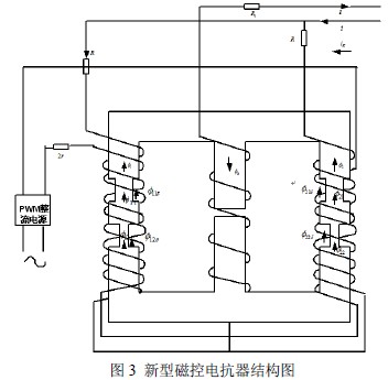 二、關鍵詞:電力系統;電抗器;兩級飽和電抗器;諧波抑制 三、引言 可控電抗器對電力系統有著非常重要的作用,磁閥式可控電抗器能隨著傳輸功率的變化自動平滑地調節自身容量,在線路傳輸大功率時,運行在小容量范圍內,當線路輕載或空載時,它會增大容量而呈現出深度的補償效應,能夠起到降低工頻電壓升高的作用。這就在很大程度上提高了電網的經濟效益。因此,可控電抗器的控制研究一直是電力系統方面研究的重點。傳統磁控電抗器應用于單相情況時[1],如電氣化鐵路動態無功補償裝置、可調消弧線圈等時,由于缺乏3 次諧波補償回路而產生較大的諧波,為進一步減少磁控電抗器在單相應用條件下的諧波,本文提出一種新型可抑制3 次諧波的雙級磁控飽和電抗器。