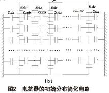 3.沖擊電壓的起始分布 通過干式空心電抗器結構分析可以看出,電抗器的匝間、層間及繞組與包封內外徑的兩個表面之間均有分布電容存在,更具其結構繪制的等值電路如圖所示。