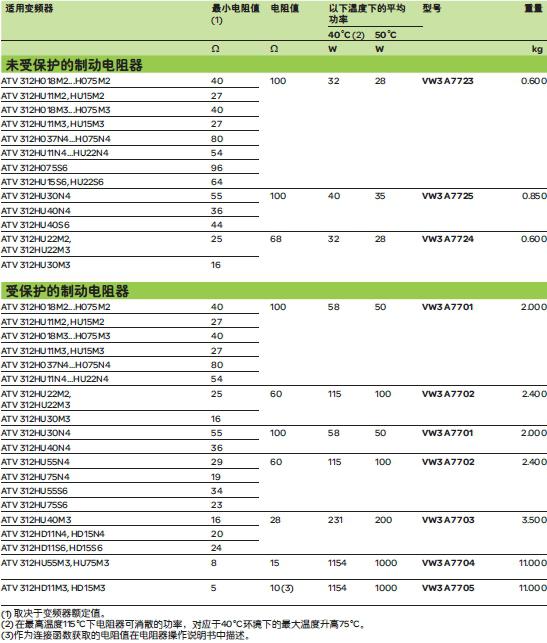 二、施耐德變頻器用制動電阻選型 1、施耐德變頻器用制動電阻介紹 施耐德變頻器用制動電阻使得ATV312變頻器在制動為靜止或減速制動過程中運行,以消散制動能量。