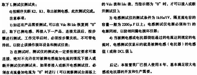 需要特別注意的是,本設備是按間歇式工作設計的,當測試電流在200A以上,產品和產品測試的間隔時間很短時,要注意整流器件和附加電感的發(fā)熱情況,必要時可增加散熱設備。