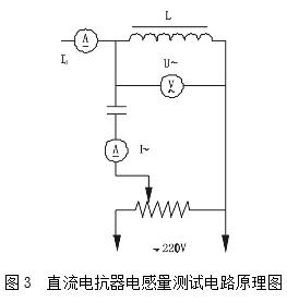 三 直流電抗器(平波電抗器)的測量 電抗器加工完成后 ,可以按圖3連接測算出電抗器的參數:圖3中,Id為額定直流電流;U~為交流電壓表讀數;I~為交流電流表讀數;L為被測電感。從下式可得被測電感量:L =U~/ωI~