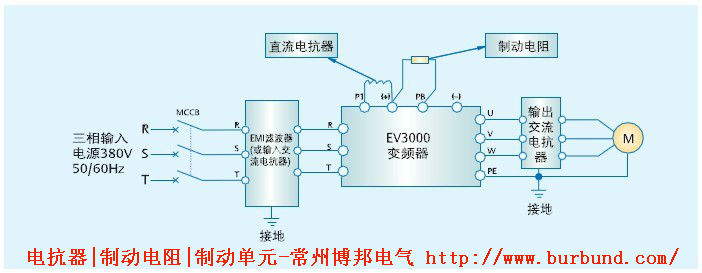 艾默生變頻器配件(電抗器、制動電阻、制動單元)接線圖 常州博邦電氣專業(yè)生產(chǎn)艾默生變頻器用電抗器、制動電阻、制動單元。這些都屬于變頻器周邊配件產(chǎn)品,它們的線路如何連接是個經(jīng)常困擾工程師的難題,現(xiàn)在就對接線圖略作說明。